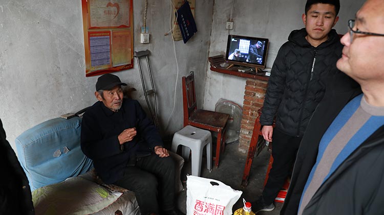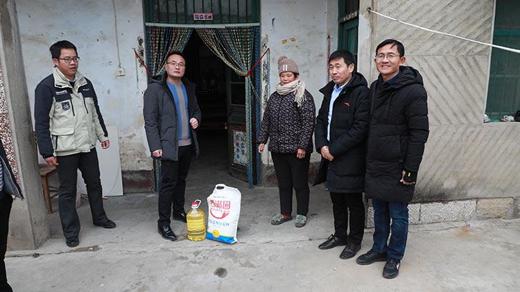 公司準備了大米、食用油等生活物品,在劉總帶領下我們來到了南集六村黨群服務處,和村領導溝通了解了村內(nèi)貧困戶情況,并一起走訪慰問貧困戶。
