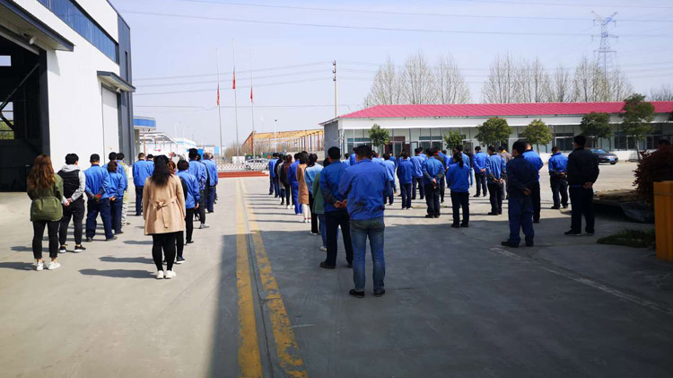 4月4號(hào)10.00整我們福瑞德機(jī)械員工自覺(jué)的集合,表情莊嚴(yán)肅立,集體默哀三分鐘。伴隨著準(zhǔn)時(shí)想起防空警報(bào),我們?nèi)w員工送去了對(duì)逝者的思念,3分鐘讓我們思考太多太多我們福瑞德全體員工放下手中的工作,集體列隊(duì),希望他們一路走好。