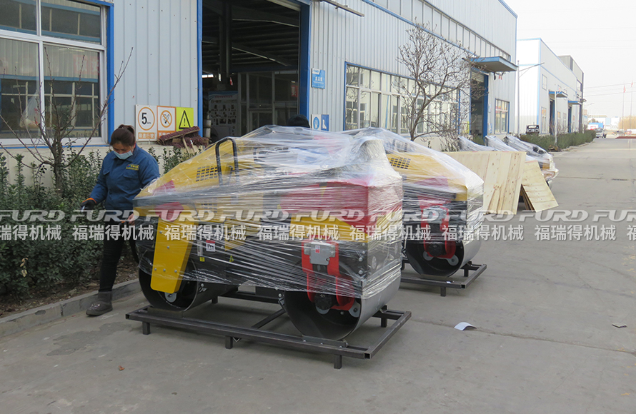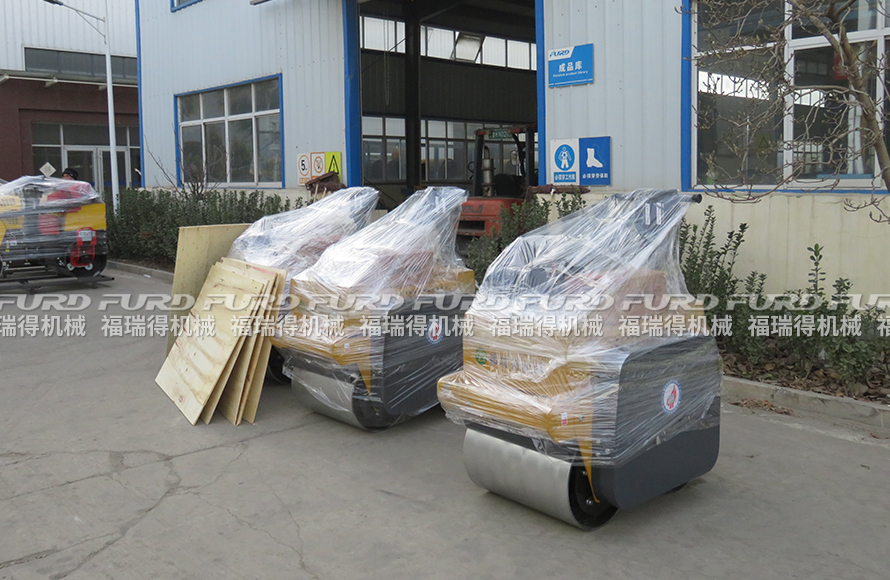 1月18日,福瑞得機(jī)械3臺(tái)手扶雙輪壓路機(jī)和兩臺(tái)座駕壓路機(jī)打包裝箱出口新加坡。
