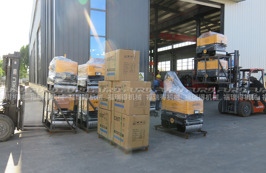 6月5日,福瑞得機(jī)械12臺手扶雙鋼輪壓路機(jī)打包裝柜出口澳大利亞。