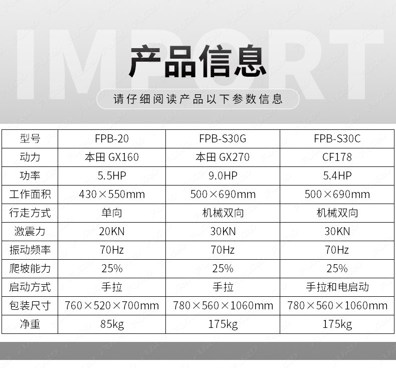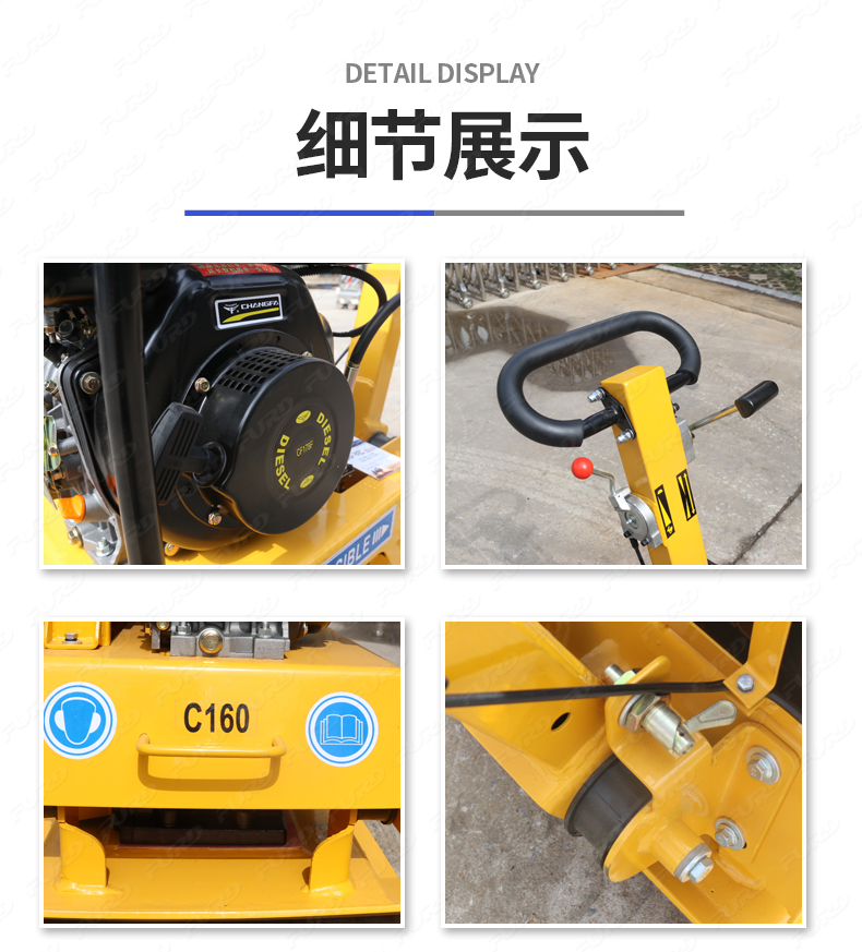適用于路基邊緣、橋涵、管道、溝槽底部等狹長地帶的壓實。 本田汽油動力,名牌品質(zhì)保證。