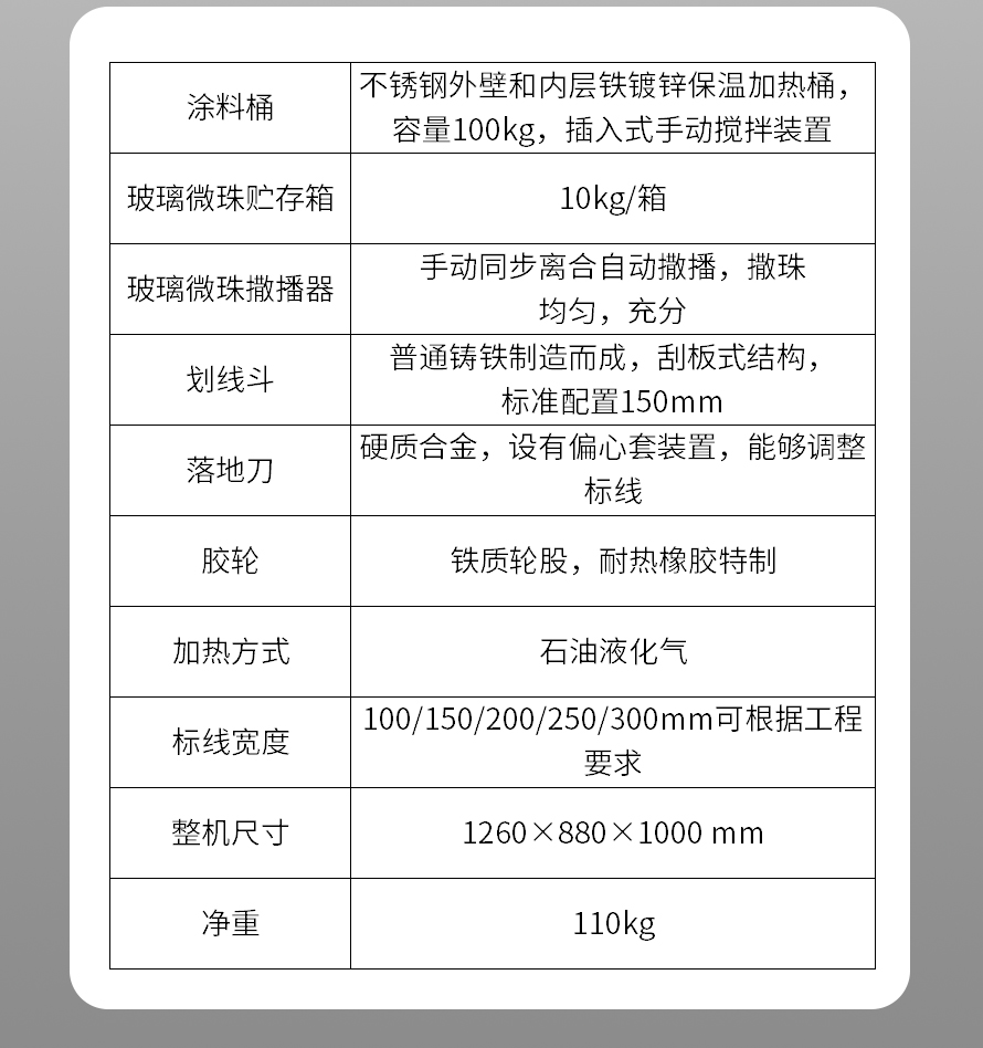 應(yīng)用于道路、高速公路、停車場(chǎng)、廣場(chǎng)和跑道的在平整地面上劃出不同約速、指引和警示等規(guī)則限制標(biāo)志的路面施工機(jī)械。