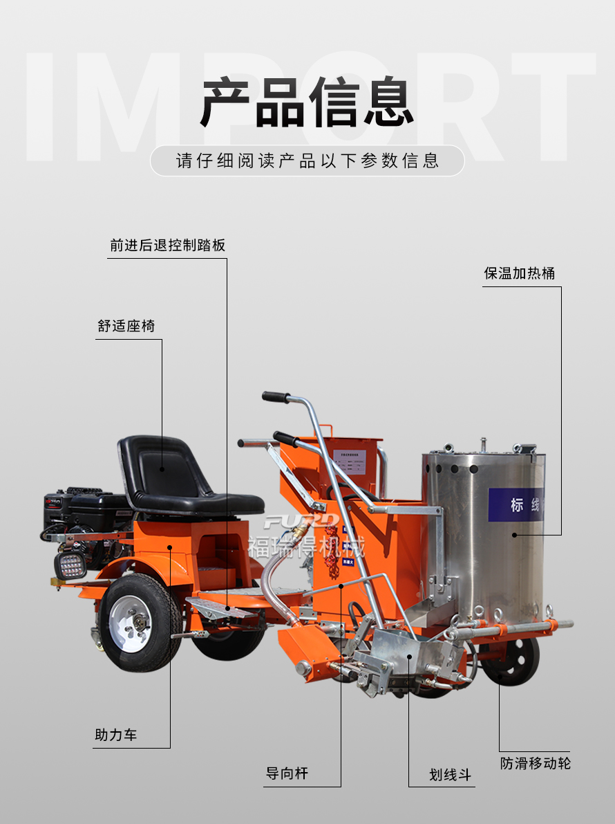 應(yīng)用于道路、高速公路、停車場、廣場和跑道的在平整地面上劃出不同約速、指引和警示等規(guī)則限制標志的路面施工機械。