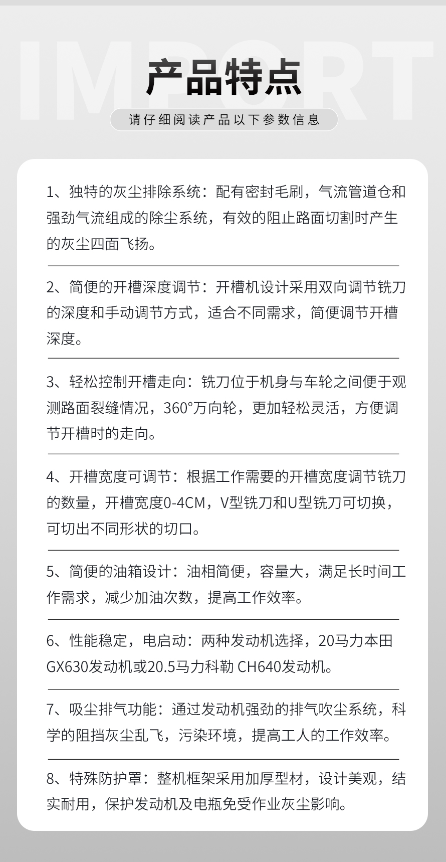 適用于瀝青路面灌縫修補前的裂縫打寬。該設備具有使用方便,擴縫速度快,刀片使用壽命長,擴縫寬度可調等優(yōu)點