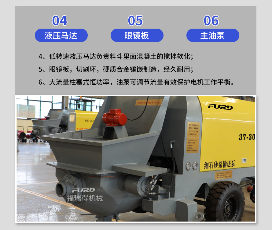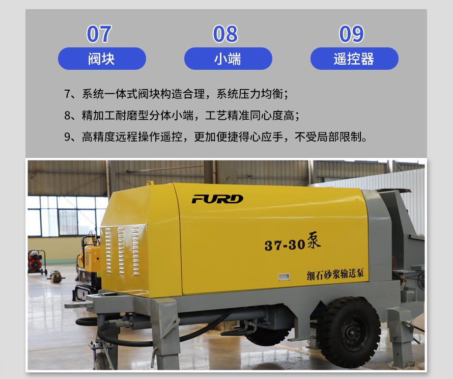 產(chǎn)品介紹: 1,大流量 采用加粗料缸,讓機(jī)械每一次循環(huán)出料多20% 2,效率高 移動便捷全部采用快接式管道卡,提高工作效率 3,便捷 本機(jī)可遠(yuǎn)程遙控,操作不受地點(diǎn)限制,更加人性化 產(chǎn)品用途: 坡道灌漿,水平地面,隧道澆筑,模