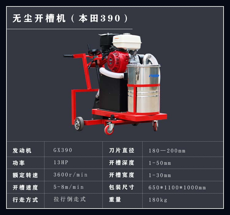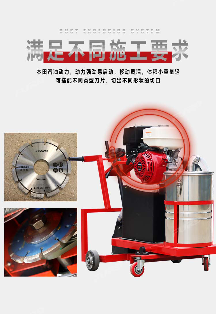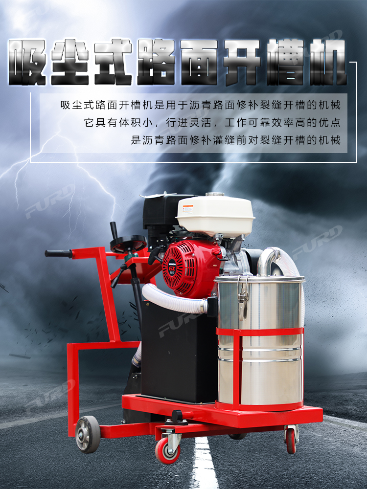 路面無(wú)塵開(kāi)槽機(jī)是主要用于瀝青路面修補(bǔ)裂縫開(kāi)槽的機(jī)械,其集吸塵、開(kāi)槽為一體,環(huán)保性.