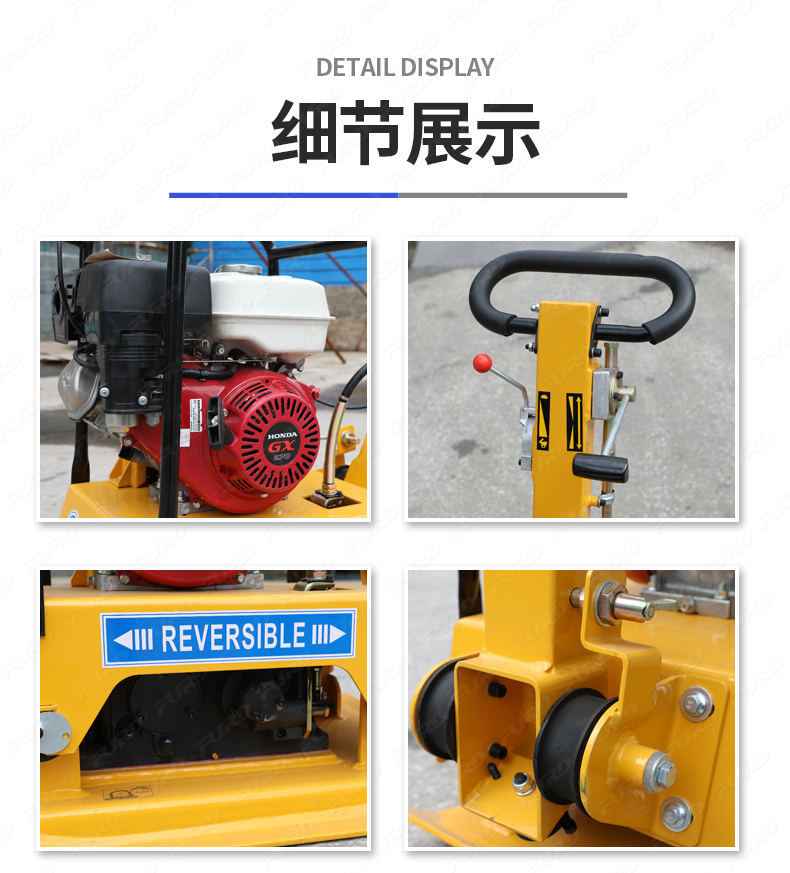 適用于路基邊緣、橋涵、管道、溝槽底部等狹長地帶的壓實。 本田汽油動力,名牌品質(zhì)保證。