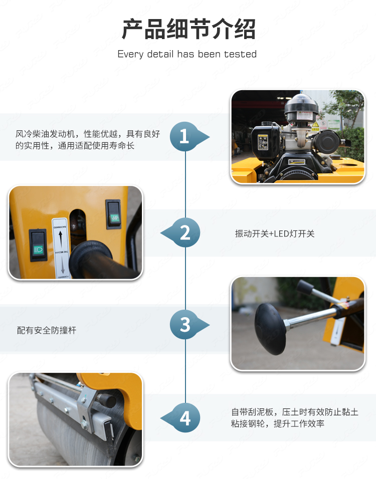 小型振動壓路機(jī),適用于各種道路、高速公路肩路、路邊人行道、停車場、運(yùn)動場、花園草坪的修補(bǔ)和養(yǎng)護(hù)。特別適用于管道、排水溝等狹窄區(qū)域的壓實。